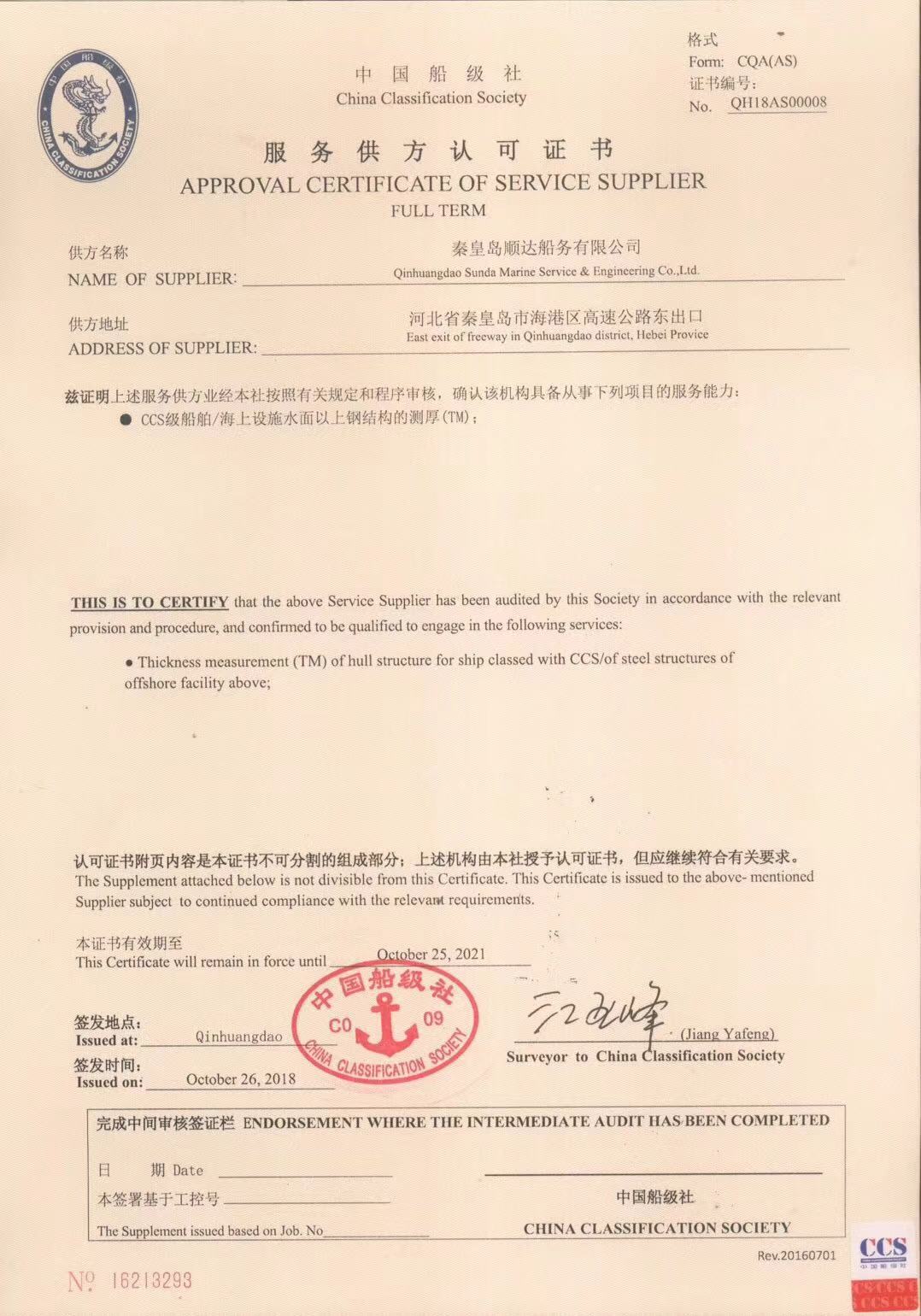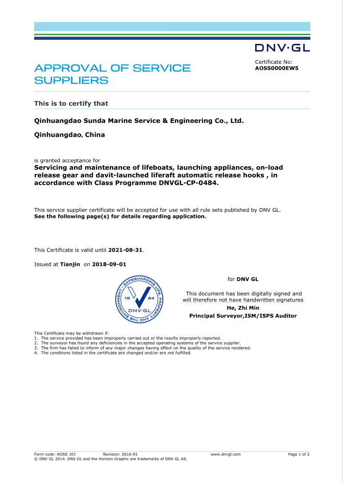秦皇島順達(dá)船務(wù)有限公司位于美麗的海濱城市、中國北方著名的能源輸出大港--秦皇島。公司從事于船舶修理、物料供應(yīng)、水下檢測、船體測厚、消防救生設(shè)備及救生艇檢驗、電氣自動化修理等服務(wù)。 公司自1997年成立至今,先后為國內(nèi)外船東修理、檢驗各類船舶萬余艘,積累了豐富的施工經(jīng)驗。公司現(xiàn)有場地100余畝,員工30余人,以及工程用車若干臺。我們公司一直本著嚴(yán)以律己、真誠待人、精益求精、信譽(yù)至上的經(jīng)營理念,以優(yōu)質(zhì)的服務(wù)、專業(yè)的施工、合理的收費(fèi),得到了國內(nèi)外船東的廣泛認(rèn)可,贏得了良好的口碑和信譽(yù)。 公司已取得了中國船級社(CCS)、美國船級社(ABS)、日本船級社(NK)、德國船級社(DNV GL)等各個船級社的消防救生和救生艇檢驗資質(zhì), ...